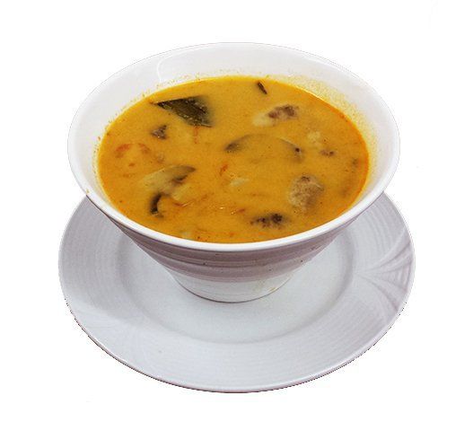 Suppe mit Hähnchen, Kokosmilch, Champignons, Tomaten